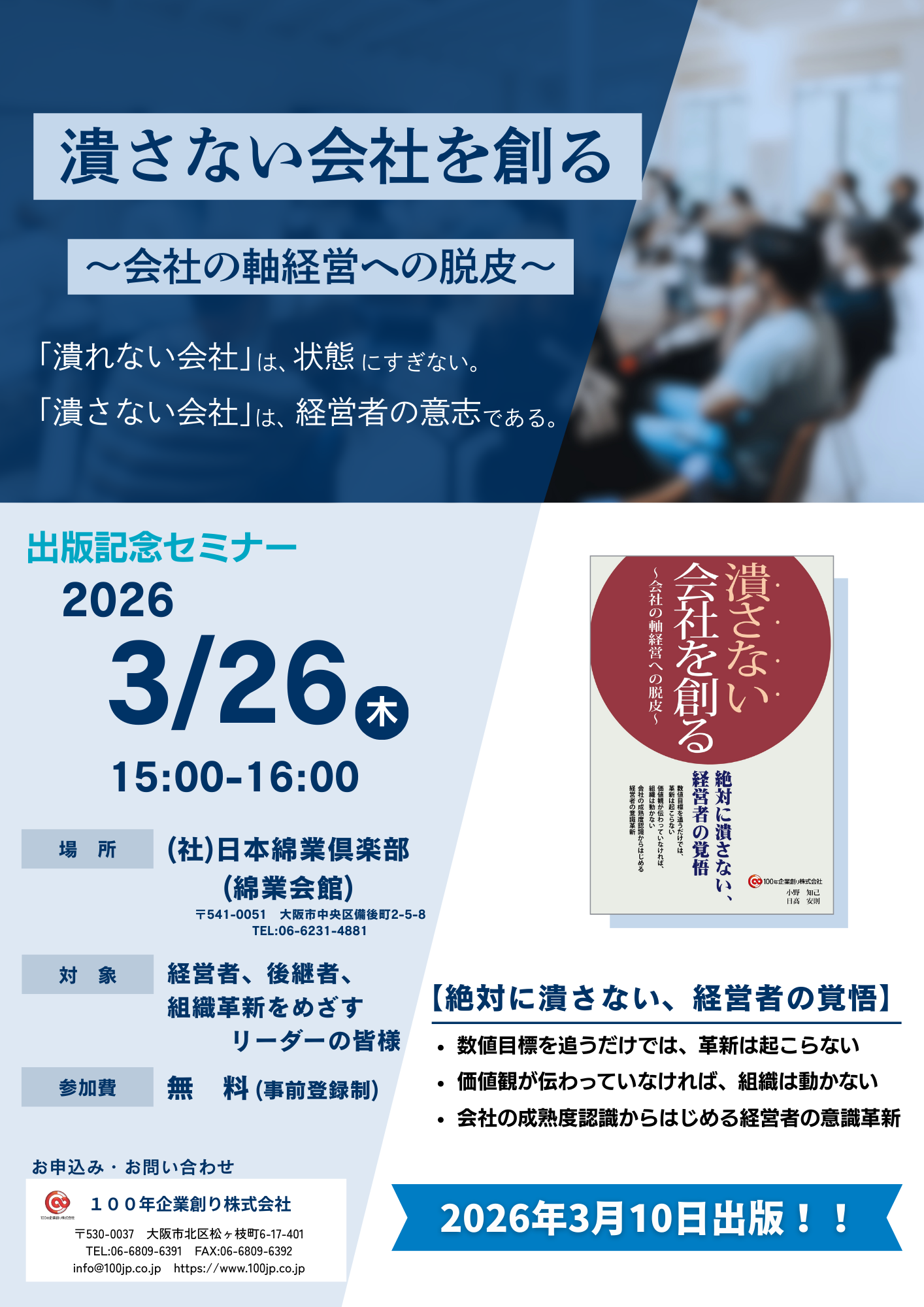 『潰さない会社を創る ~会社の軸経営への脱皮~』 出版セミナー申込書 – フォームに記入する